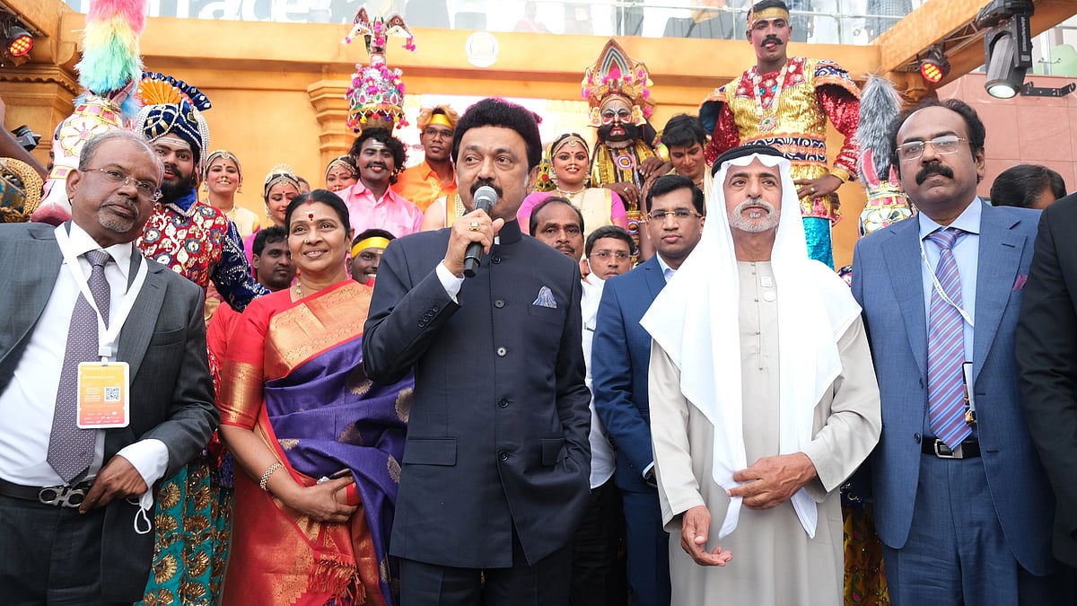 தமிழகத்தினுடைய முதலமைச்சராக பொறுப்பேற்று முதல் முறையாக இந்த துபாய்க்கு வருவதில் அளவு கடந்த மகிழ்ச்சி அடைகிறேன். எப்படி உலகத்தில் இருக்கக்கூடிய எந்தப் பகுதிகளாக இருந்தாலும், எந்த நாடுகளாக இருந்தாலும், அங்கு இருக்கக்கூடிய தமிழர்களுக்கு நம்முடைய தமிழக அரசு குரல் கொடுத்துக் கொண்டிருக்கிறதோ, பாதுகாப்பாக இருக்கிறதோ, அது தொடர்ந்து நடைபெறும். எனவே ஒன்றிணைந்து வேற்றுமையிலே ஒற்றுமை காணவேண்டிய நிலையில் இந்தச் சிறப்பான கண்காட்சி நடத்தப்பட்டுக் கொண்டிருக்கிறது. இதில் நம்முடைய தமிழ்க் கலாச்சாரத்தை, தமிழ்ப் பண்பாட்டை உணர்த்தக்கூடிய வகையில் இந்த கலை நிகழ்ச்சி நடத்தியிருக்கக்கூடிய அந்தக் கலைஞர்களுக்கெல்லாம் மீண்டும், மீண்டும் என்னுடைய தமிழ் வணக்கத்தைத் தெரிவித்து, உங்கள் அத்தனை பேருக்கும் நன்றி, நன்றி என்று கூறி விடைபெறுகிறேன். நன்றி, வணக்கம்.