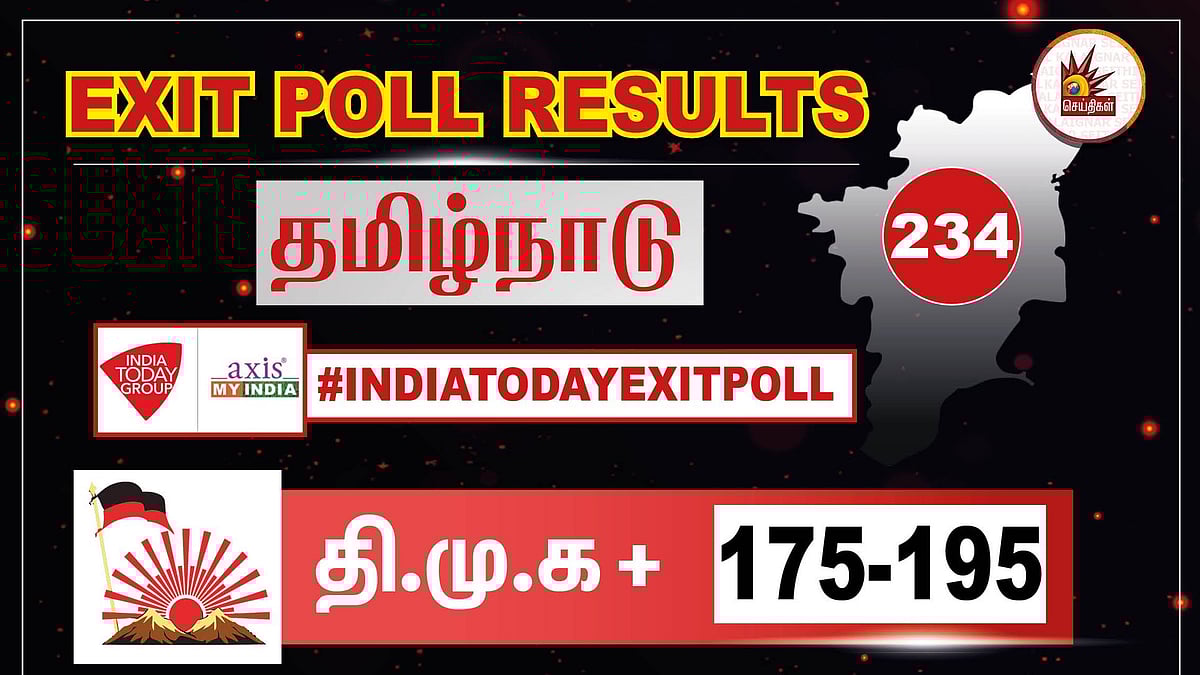 இந்தியா டுடே - மை ஆக்சிஸ் இணைந்து நடத்திய தேர்தலுக்குப் பிந்தைய கருத்துக் கணிப்புகளின் படி தி.மு.க கூட்டணி 175 முதல் 195 தொகுதிகள் வரை வெல்லும் எனக் கணிக்கப்பட்டுள்ளது. அ.தி.மு.க கூட்டணி 38 முதல் 54 தொகுதிகள் வரை வெல்ல வாய்ப்பிருப்பதாக கணிக்கப்பட்டுள்ளது. மற்ற கட்சிகள் 1 முதல் 4 வரை வெல்லக்கூடும் எனத் தெரிவிக்கப்பட்டுள்ளது.