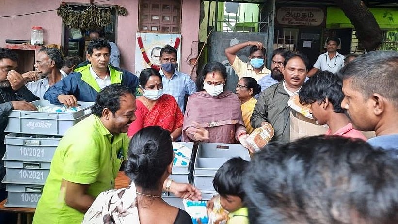 முத்தமிழறிஞர் கலைஞர் அவர்களின் புதல்வியும் தமிழக முதல்வர் மு.க.ஸ்டாலின் அவர்களின் சகோதரியுமான திருமதி. செல்வி செல்வம் அவர்கள் ஆயிரம் விளக்கு பகுதியில் மழை வெள்ளத்தால் பாதிக்கப்பட்ட மக்களுக்கு தொடர்ந்து மூன்று நாட்களாக உணவு மற்றும் பால், பிஸ்கட் ஆகியவற்றை வழங்கி வருகிறார்.