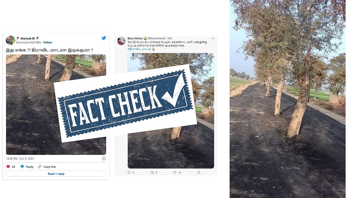 அந்தவகையில், பா.ஜ.க ஆளும் ஹரியானா மாநிலத்தில் போடப்பட்ட சாலையை தமிழ்நாடு என பா.ஜ.க கும்பல் பொய் செய்தியை பரப்பியது அம்பலமாகியுள்ளது. கடந்த 2018ம் ஆண்டு, ஹரியானா மாநிலம் ஃபதேகாபாத் மாவட்டத்தில் ஷேகுபூர் தாதுளி மற்றும் பனவாளி கிராமங்களுக்கு இடையே பொதுப்பணித்துறையால் போடப்பட்ட தார் சாலையில் மரங்களை அகற்றாமல் போடப்பட்டுள்ளது. இதனை தமிழ்நாடு என்றும் திராவிட மாடல் அரசா எனவும் அரசுக்கு எதிராக வெறுப்பு பிரச்சாரத்தையும், பொய் தகவலையும் பரப்பி வருகின்றனர்.
